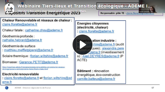- Présentation des aides de l'ADEME IDF et questions / réponses