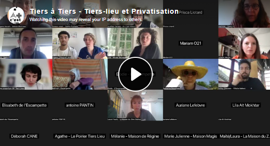 - Échanges de 45mn avec Lucile Aigron de la Coopérative des Tiers-lieux et Stephane Veyer, de Coopaname et la Manufacture Coopérative ayant écrit un article sur le travail en tiers-lieux pour le Labo des Tiers-lieux. Animé par Aurélien Denaes, co-coordinateur d'A+ c'est mieux.